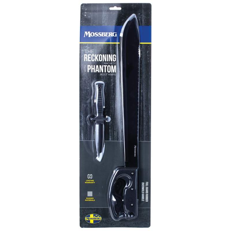 This black steel 18" machete has a hand guard with a non-slip durable handle. Great to use in any environment from the forest to the farm. Even better, it comes with a boot knife for extra convenience. You will always be prepared for whatever the job entails. Each has its own sheath for storage and safety.