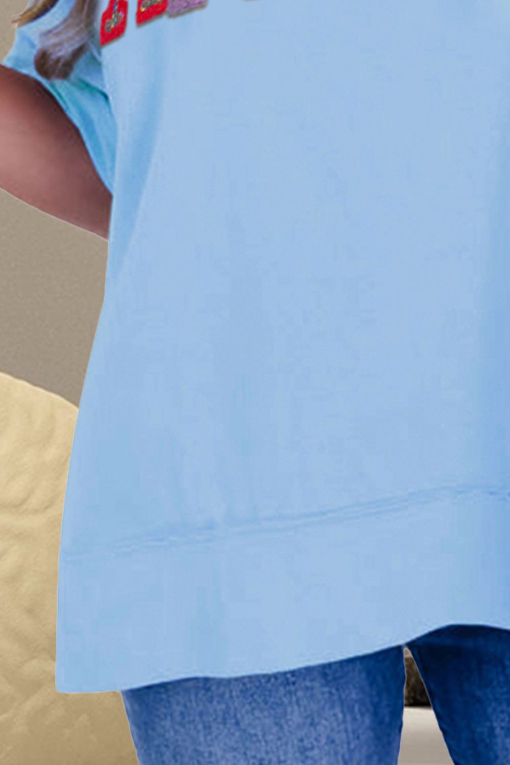 AMERICA Sequin Round Neck Half Sleeve T-Shirt