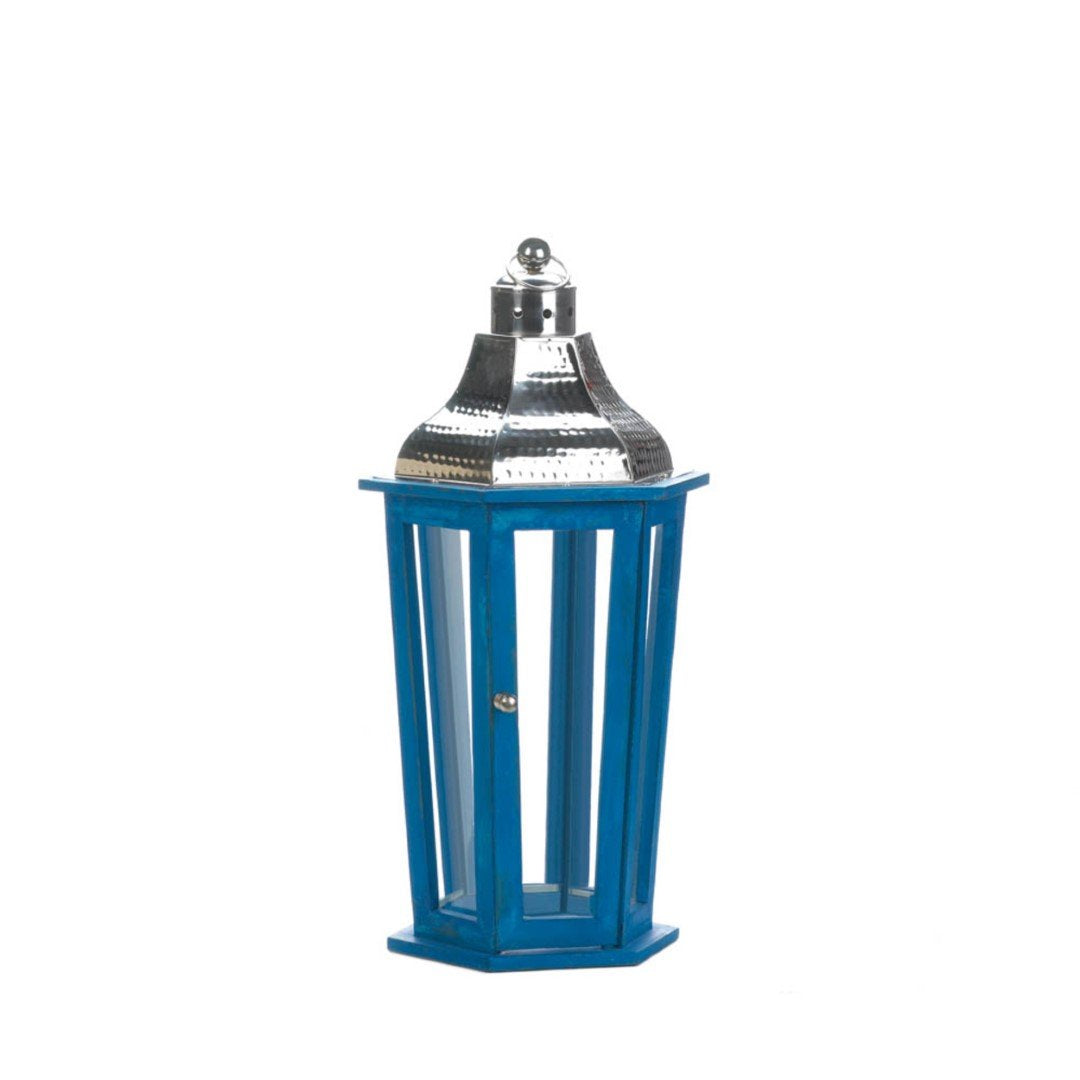 Vibrant and fresh, the medium Azul Beach Wooden Lantern will add a youthful and elevated coastal vibe to your space. Mango wood frame with stainless steel top. Glass window panes.