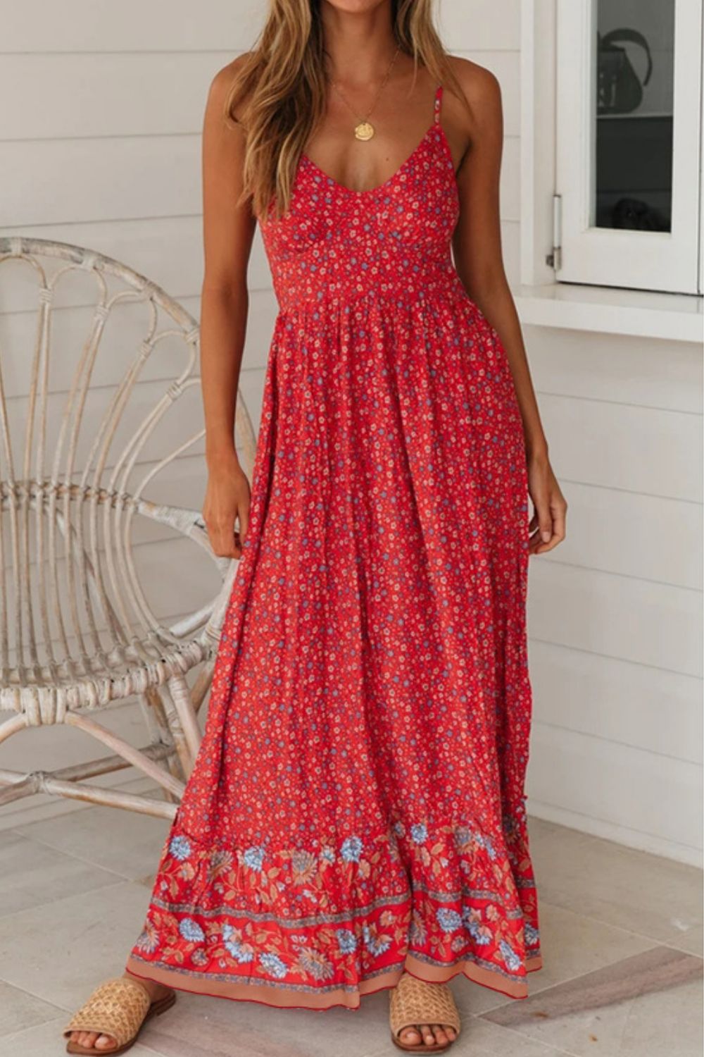 Bohemian Spaghetti Strap Frill Trim Maxi Dress