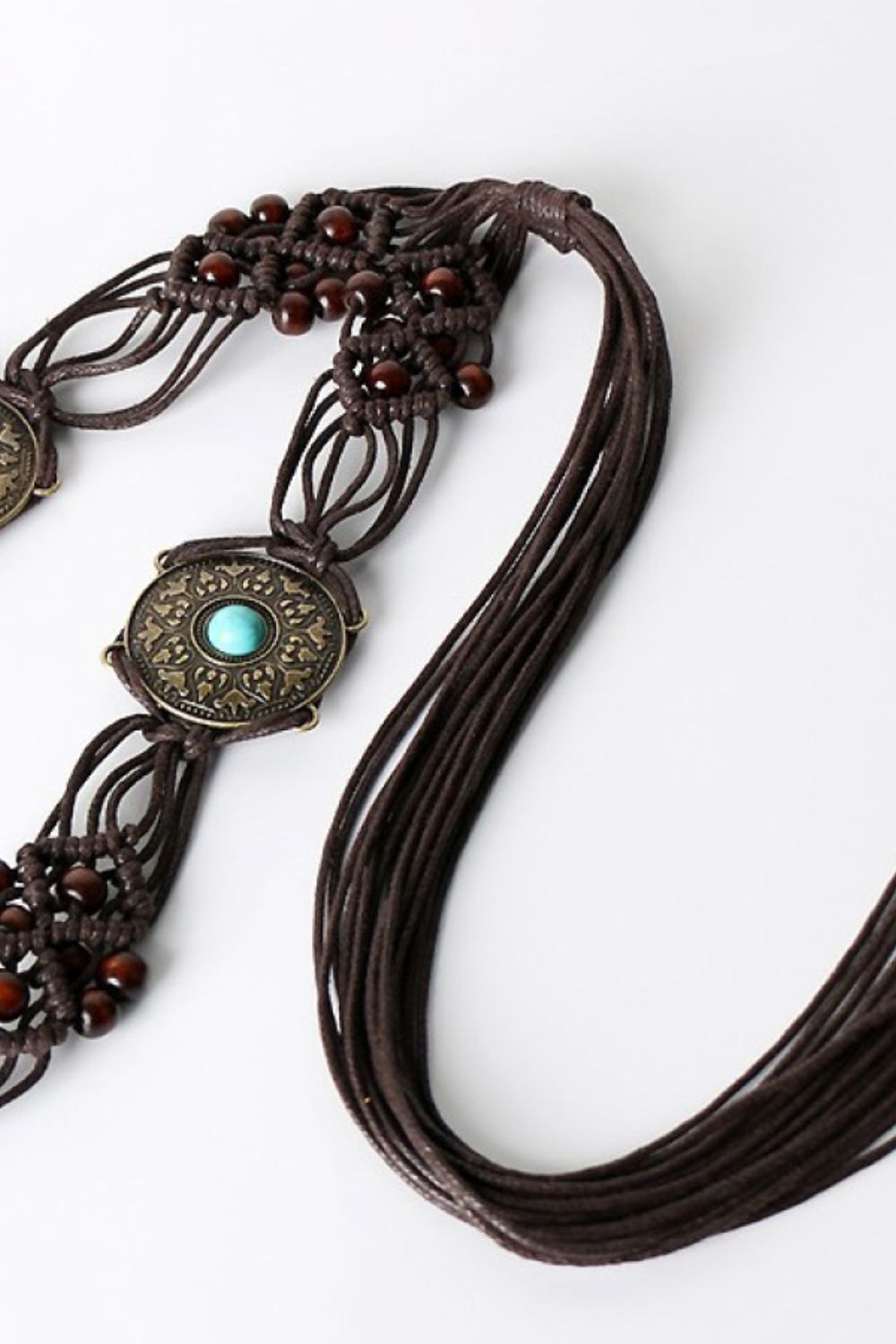 - Material: Cotton rope, wooden beads, alloy imitation gemstones