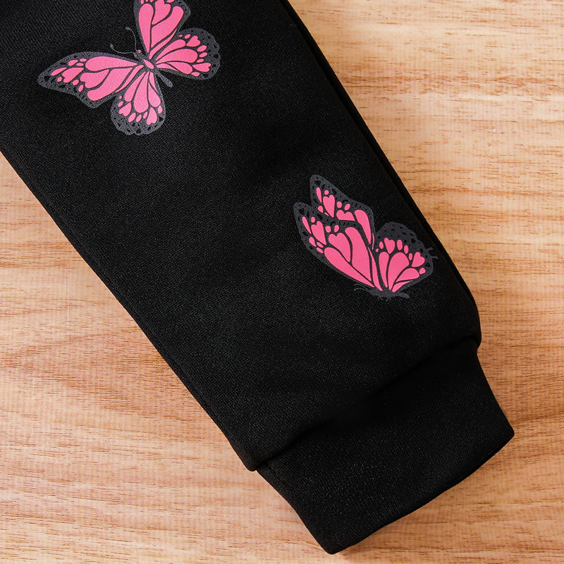 Butterfly Print Round Neck Long Sleeve Top and Pants Set