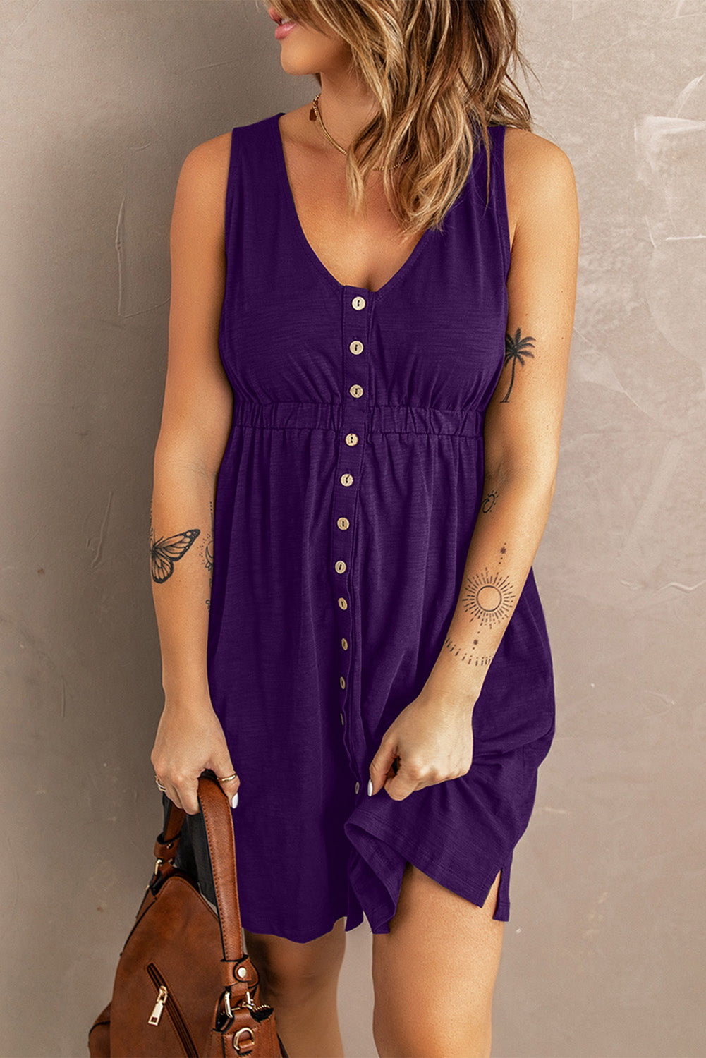This sleeveless dress is a casual style that you can't miss. The empire waist and slit add a chic touch to the overall look, making it suitable for both work and play.