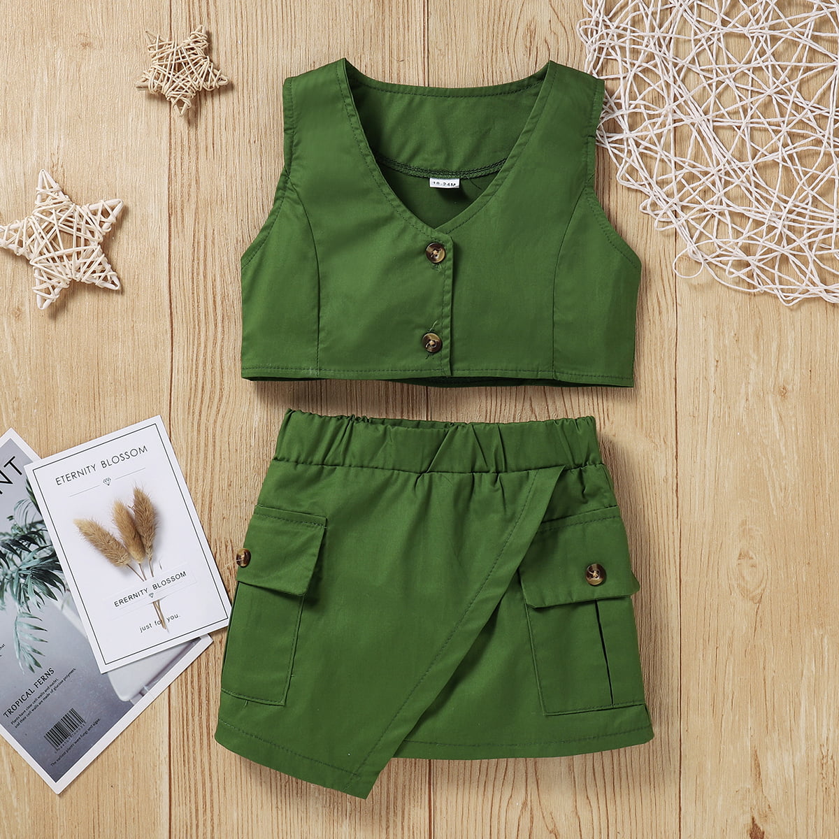 Buttoned V-Neck Tank and Skirt Set