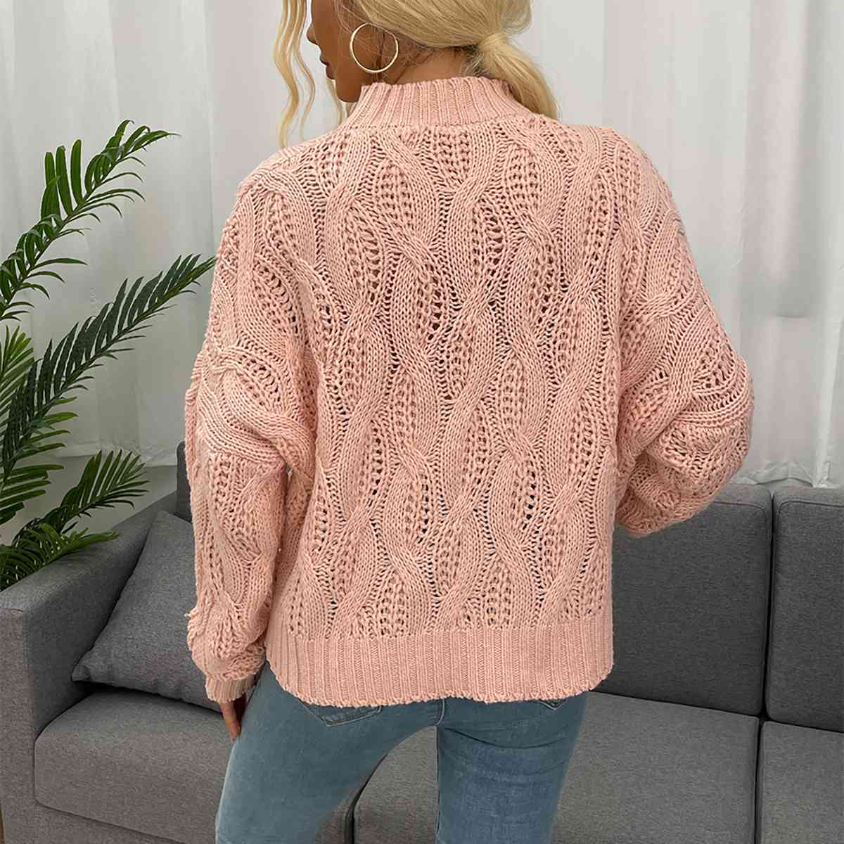Cable-Knit Mock Neck Long Sleeve Sweater