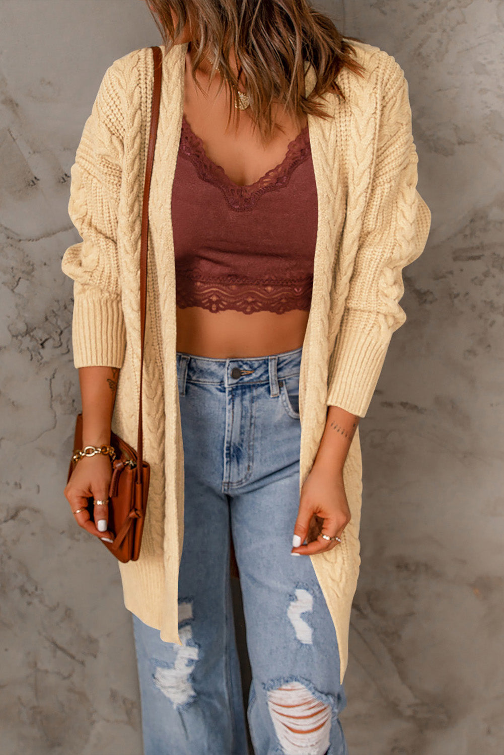Cable-Knit Open Front Sweater Cardigan