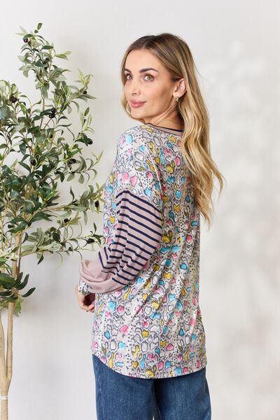 Celeste Full Size Animal Print Striped Long Sleeve Top