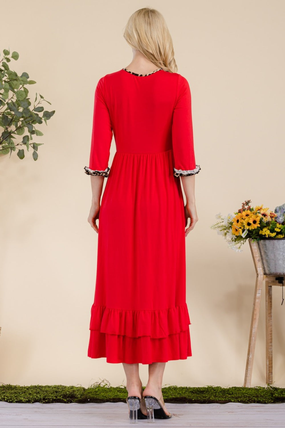 Celeste Full Size Leopard Ruffle Detail Midi Dress