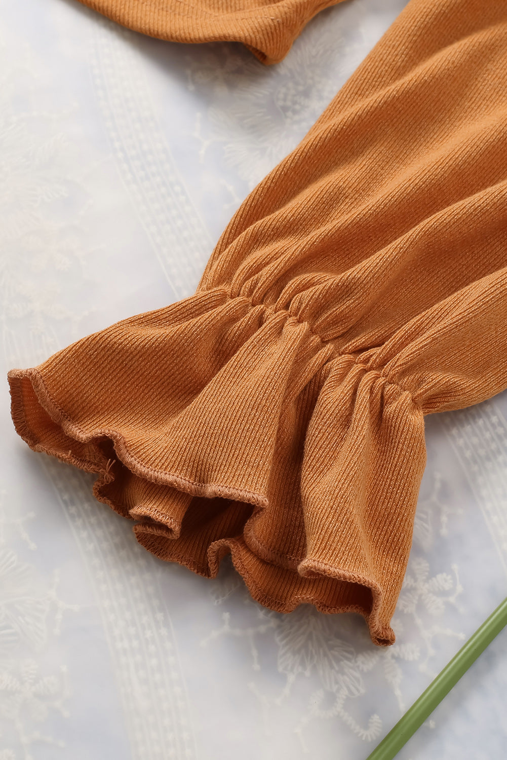 Drawstring Detail Flounce Sleeve Off-Shoulder Crop Top