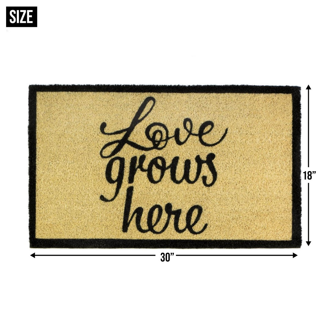 An inviting décor piece, the Emilia “Love Grows Here” Coir Doormat will decorate your home with warmth and love. |• Thick and durable coir base.|• Slip-resistant PVC backing.
