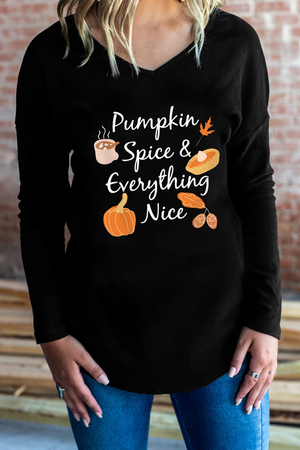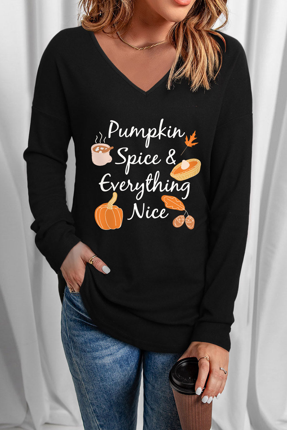 Fall Theme V-Neck Long Sleeve T-Shirt
