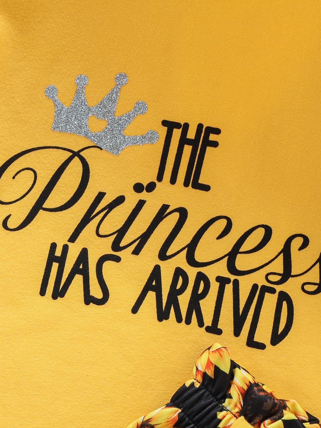 Girls Slogan Graphic Top and Sunflower Print Shorts Set