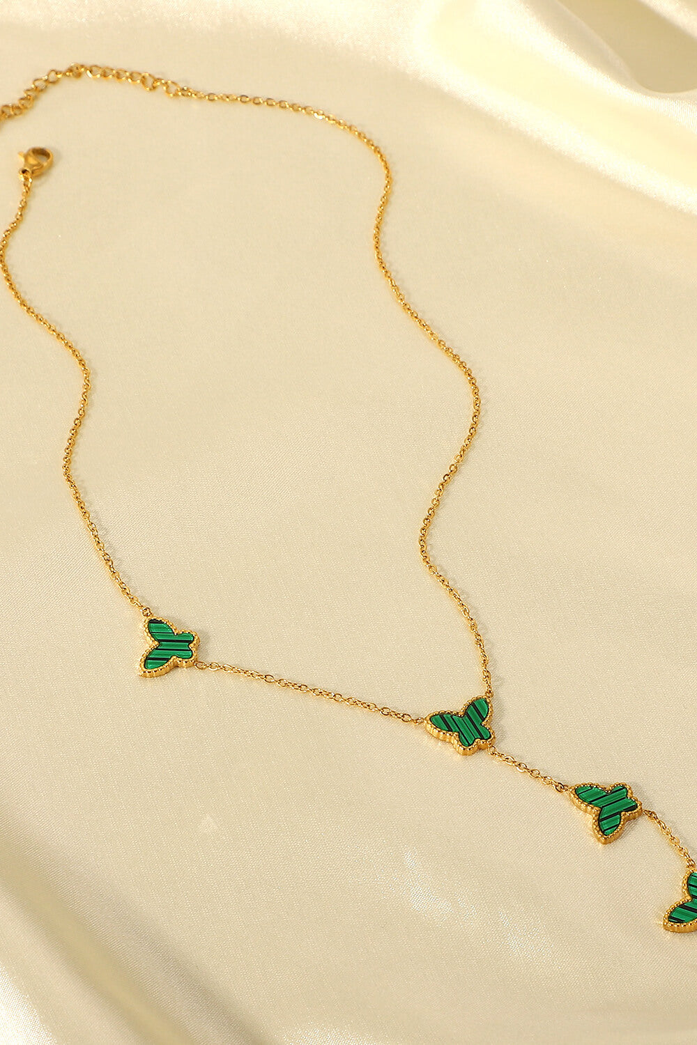 - Features: Butterfly pendant, drop chain