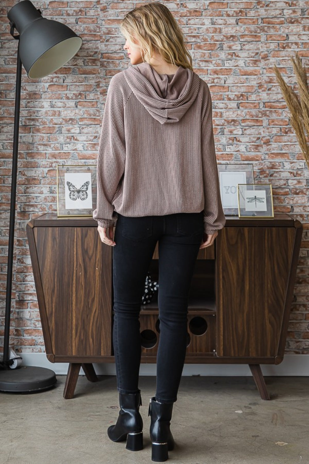 Heimish Full Size Ribbed Drawstring Kangaroo Pocket Hoodie