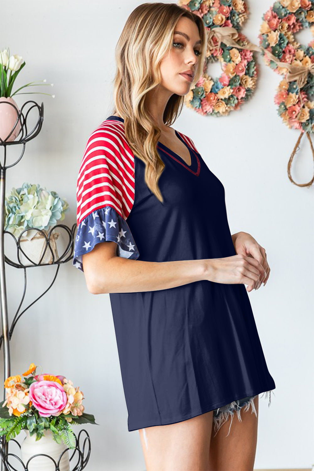 Heimish Full Size V-Neck Flounce Sleeve T-Shirt