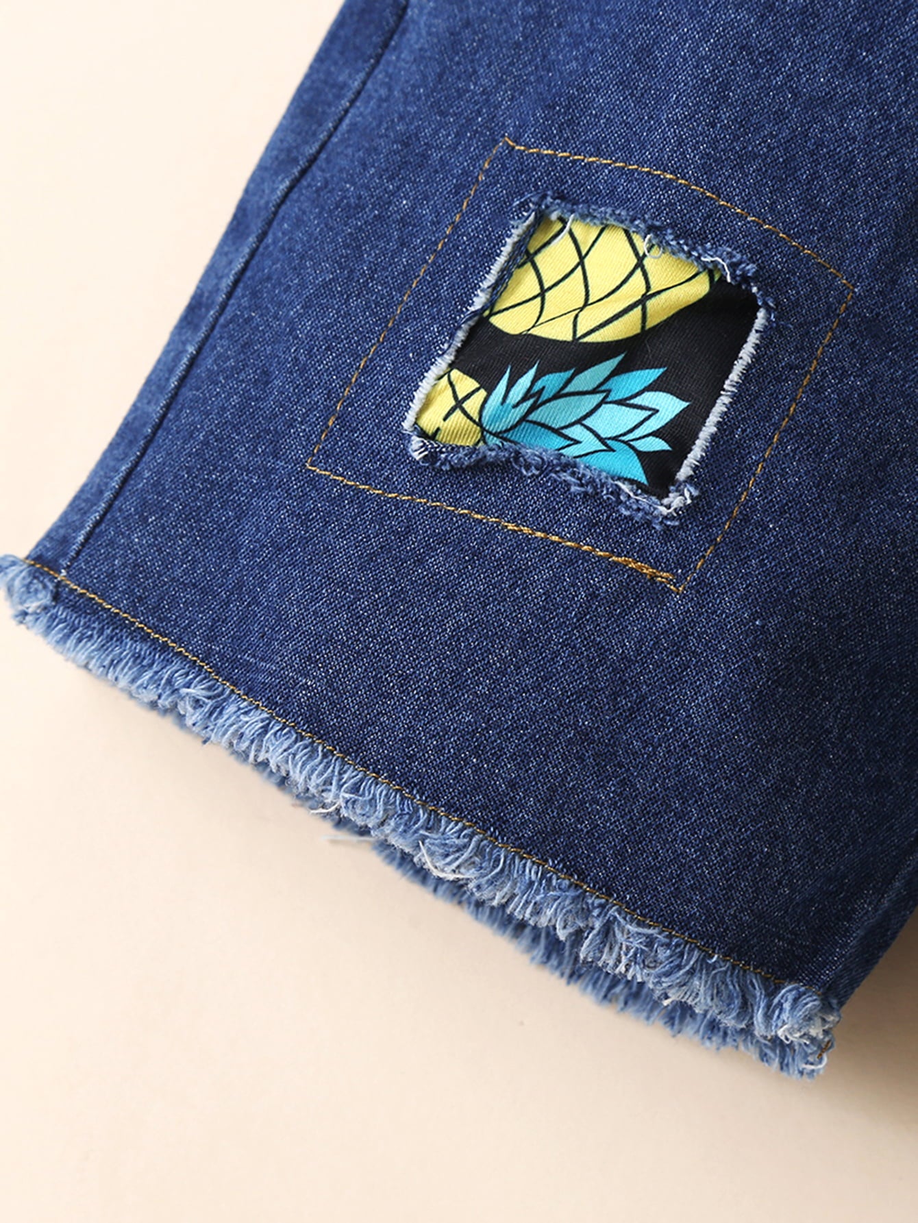 HELLO SUMMER Pineapple Graphic Tank and Raw Hem Denim Shorts Set