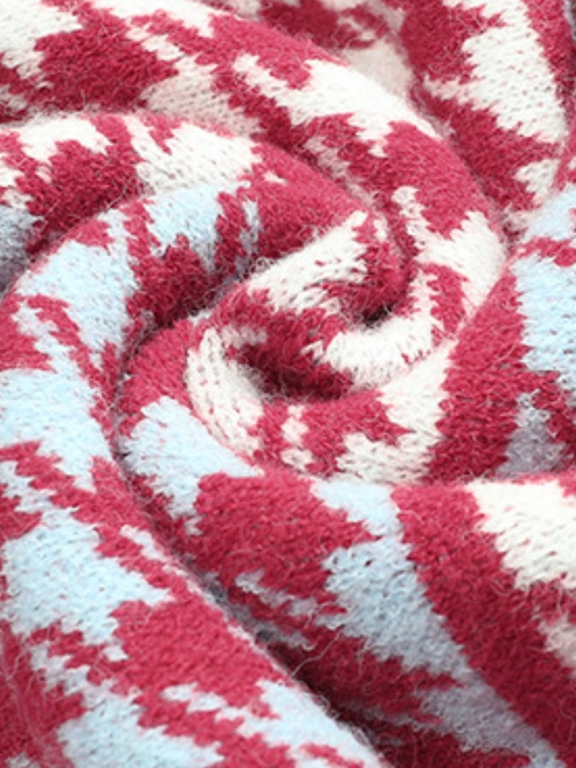 Houndstooth Round Neck Dropped Shoulder Sweater