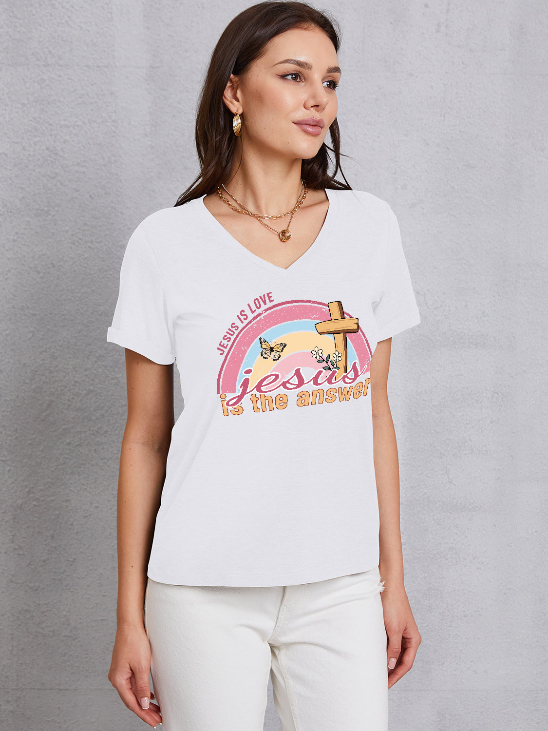 JESUS IS THE ANSWER V-Neck Short Sleeve T-Shirt