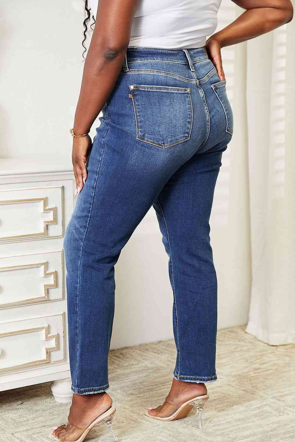 Judy Blue Full Size High Waist Contrast Wash Thermal Straight Jeans
