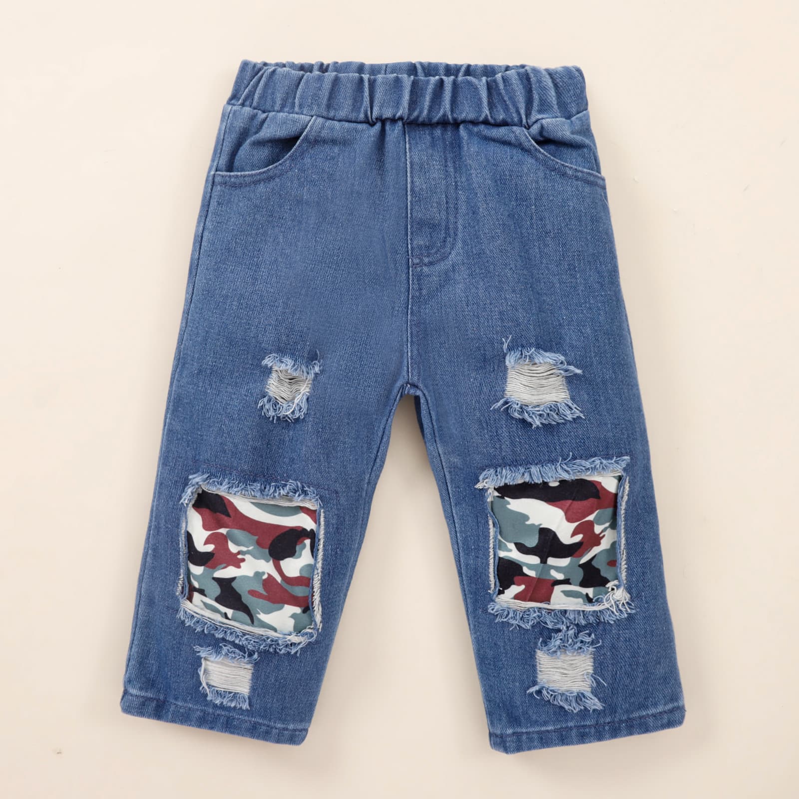 Kids Slogan Graphic Sweatshirt and Camoflague Patch Distressed Jeans Set