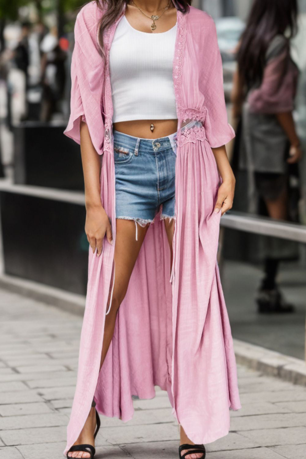 Lace Detail Half Sleeve Open Front Cardigan