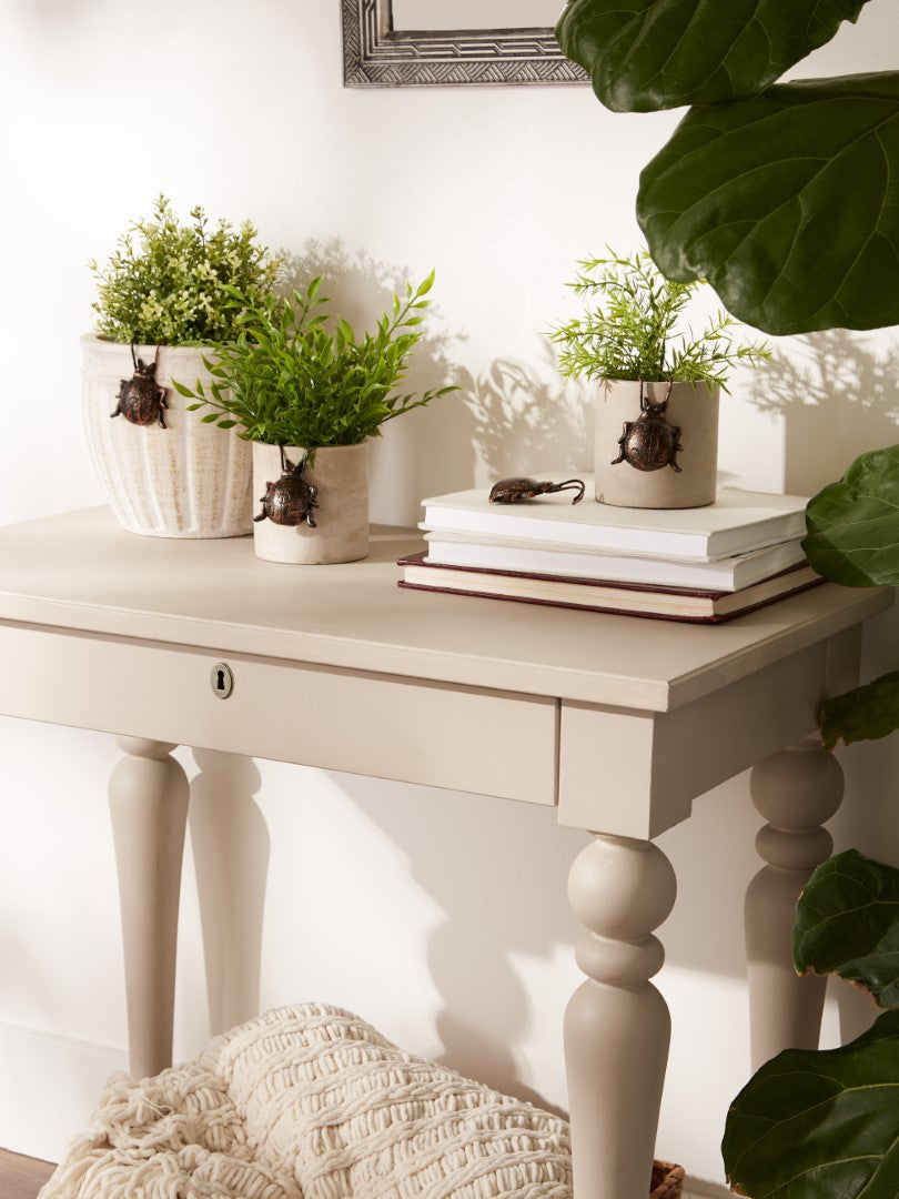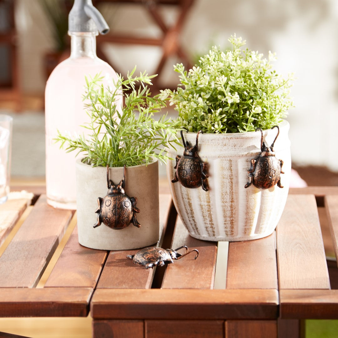 - Hang this durable cast iron decor from all of your pots and flower baskets to add a bit of whimsy to your space.