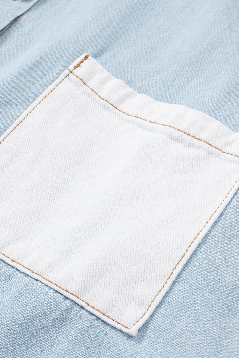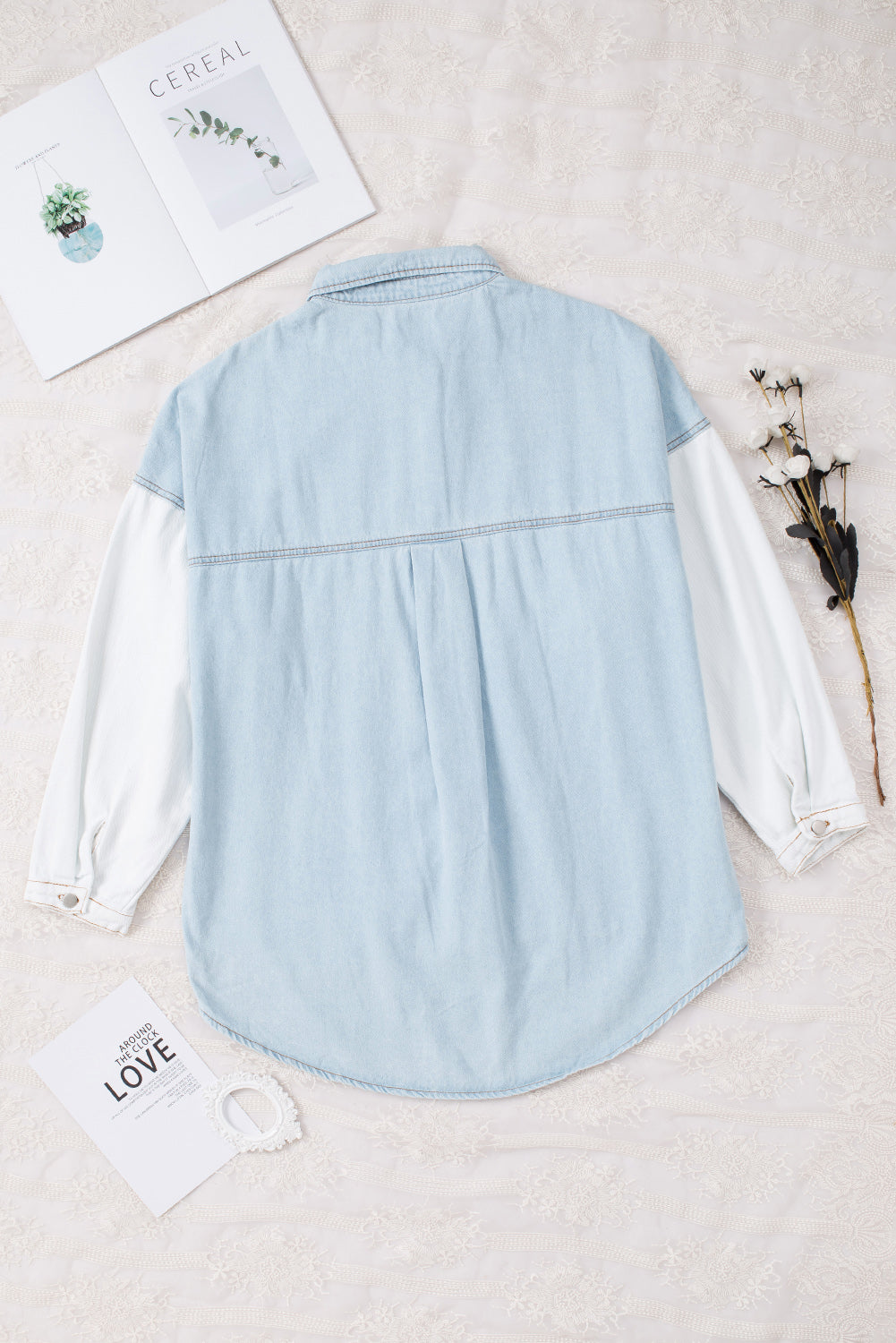 - Feature: Long sleeve, pockets, buttoned, denim shirt
