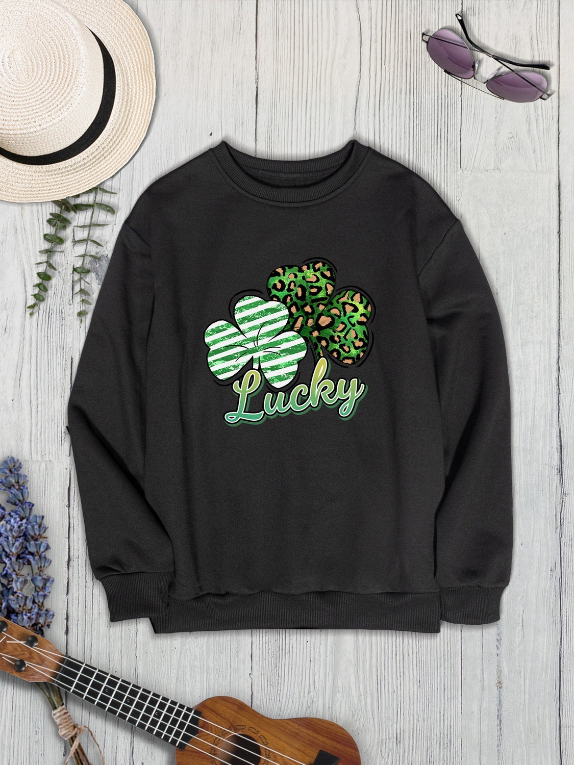 Lucky Clover Round Neck Dropped Shoulder Sweatshirt