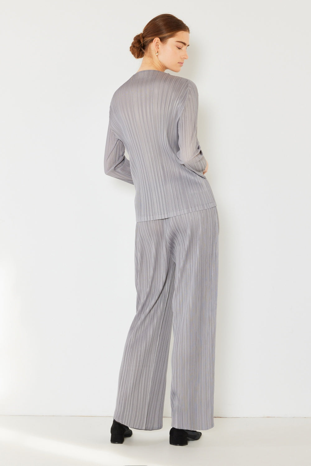 The pleated elastic-waist straight pants are a comfortable and stylish addition to any wardrobe. The pleats add a touch of sophistication and detail to the classic straight-leg design. The elastic waist provides a perfect fit and ensures ease of wear. These pants are versatile and can be dressed up or down for various occasions. With their straight silhouette, they offer a flattering and versatile look. Overall, these pants combine comfort and style effortlessly, making them a versatile and practical choice for any outfit.