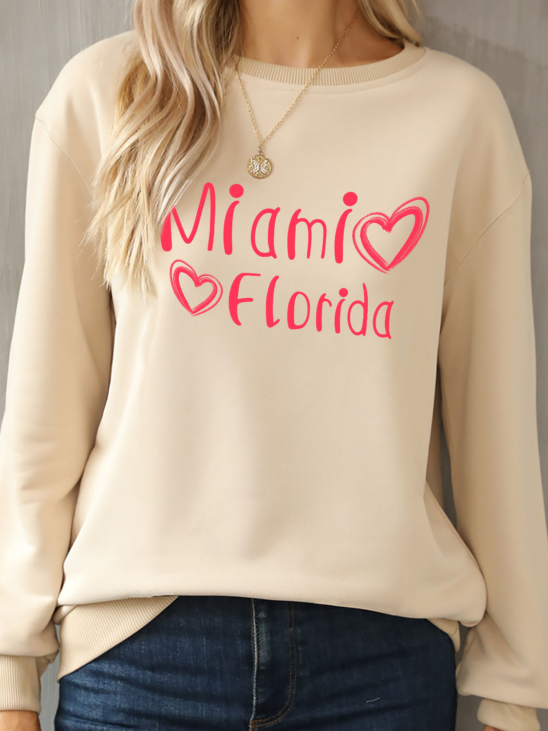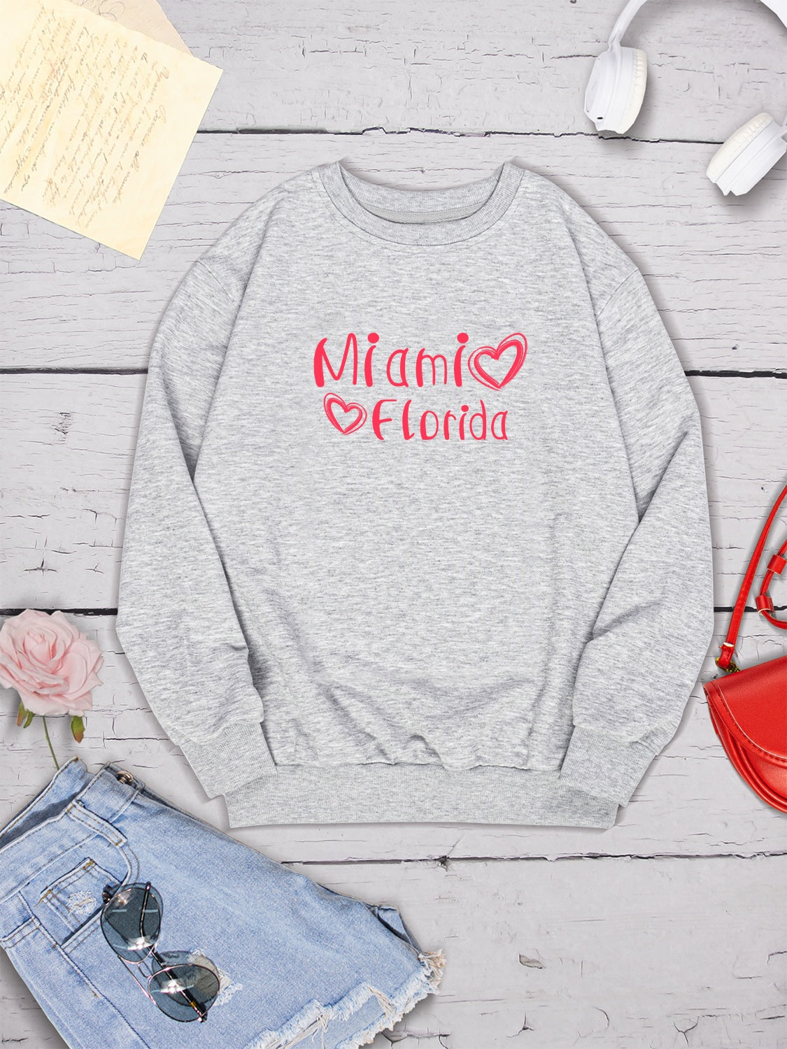 MIAMI FLORIDA Round Neck Dropped Shoulder Sweatshirt