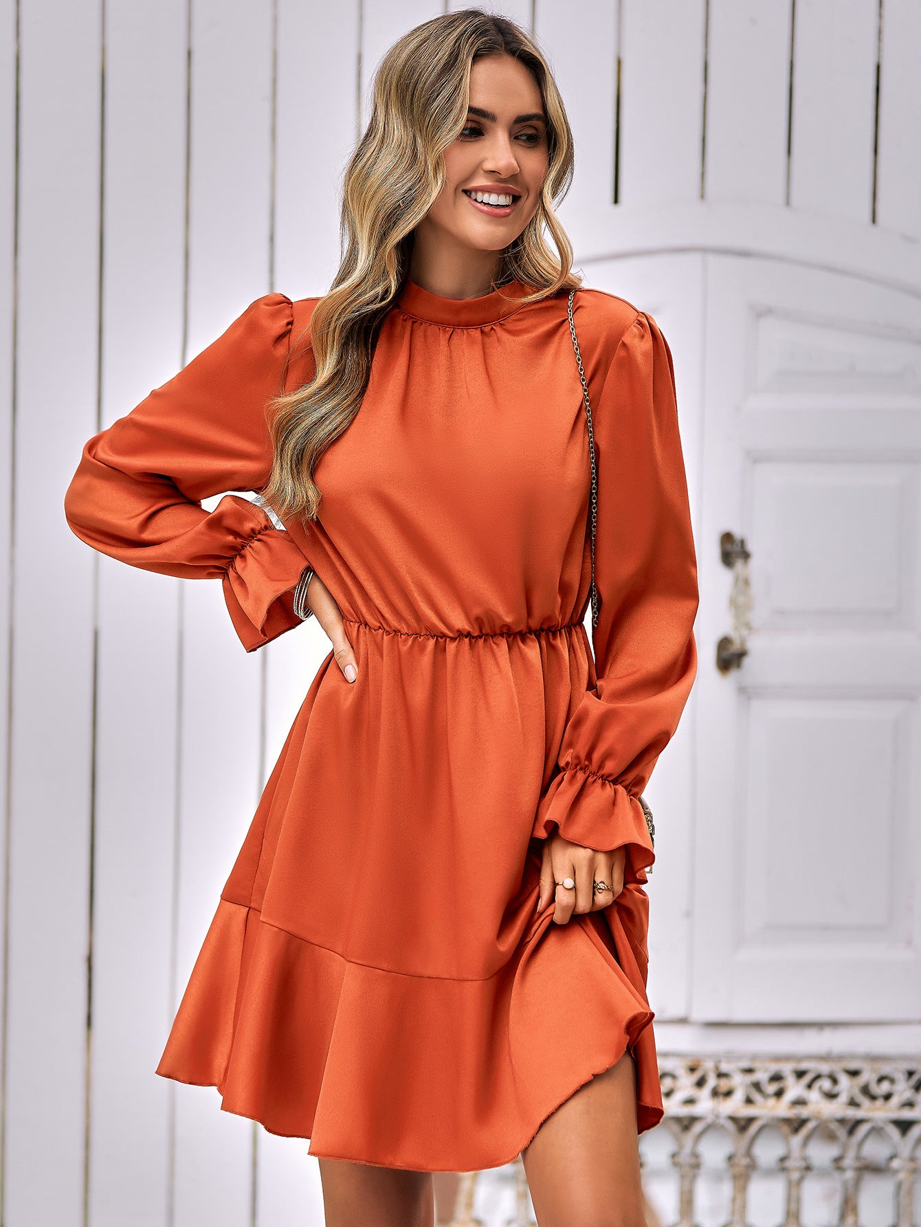 Mock Neck Flounce Sleeve Mini Dress