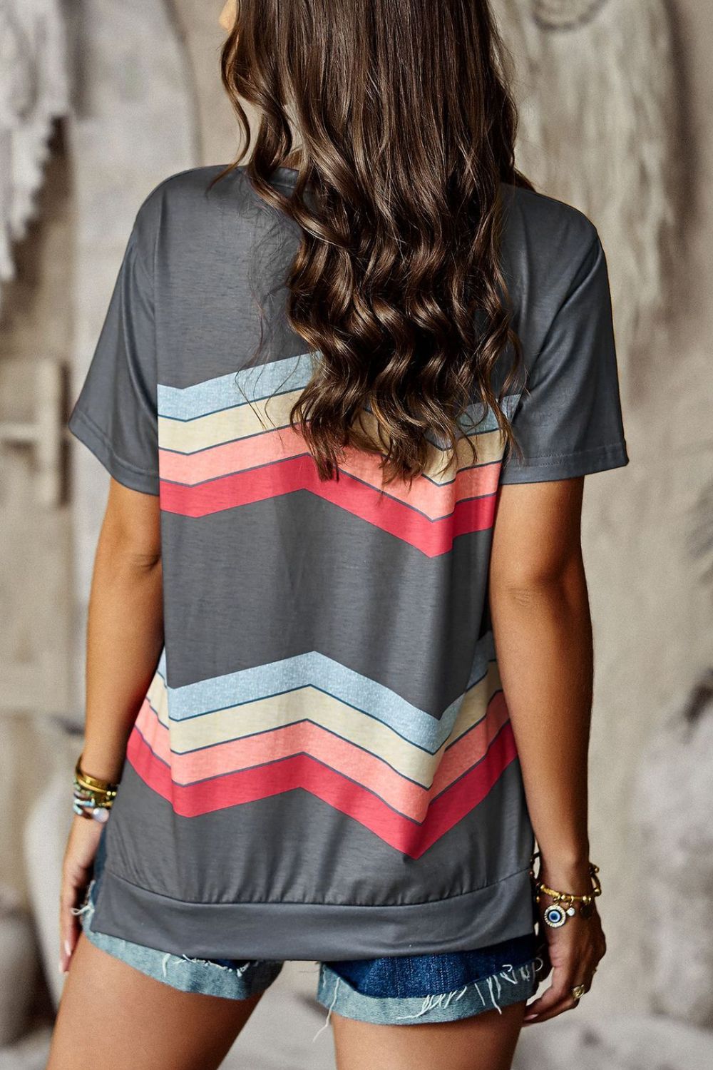 Multicolored Chevron Stripe Round Neck Side Slit T-Shirt