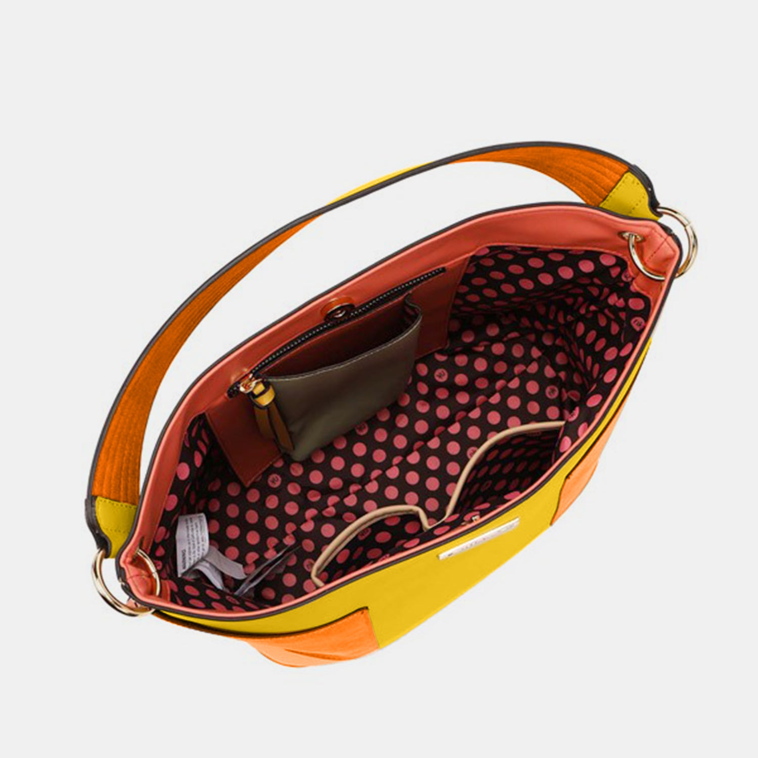 Large interior lined with signature Nikky polka dot print polyester fabric.