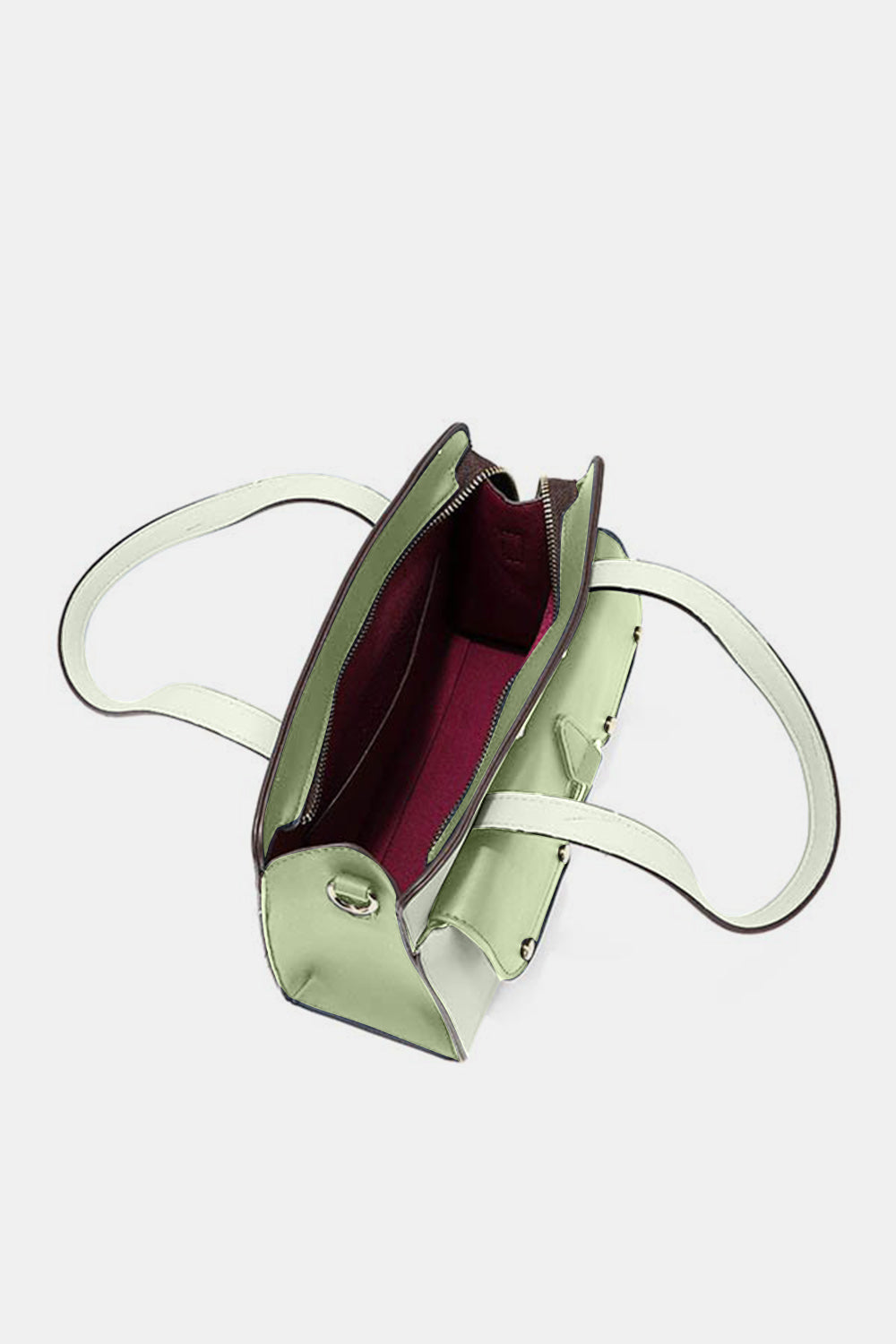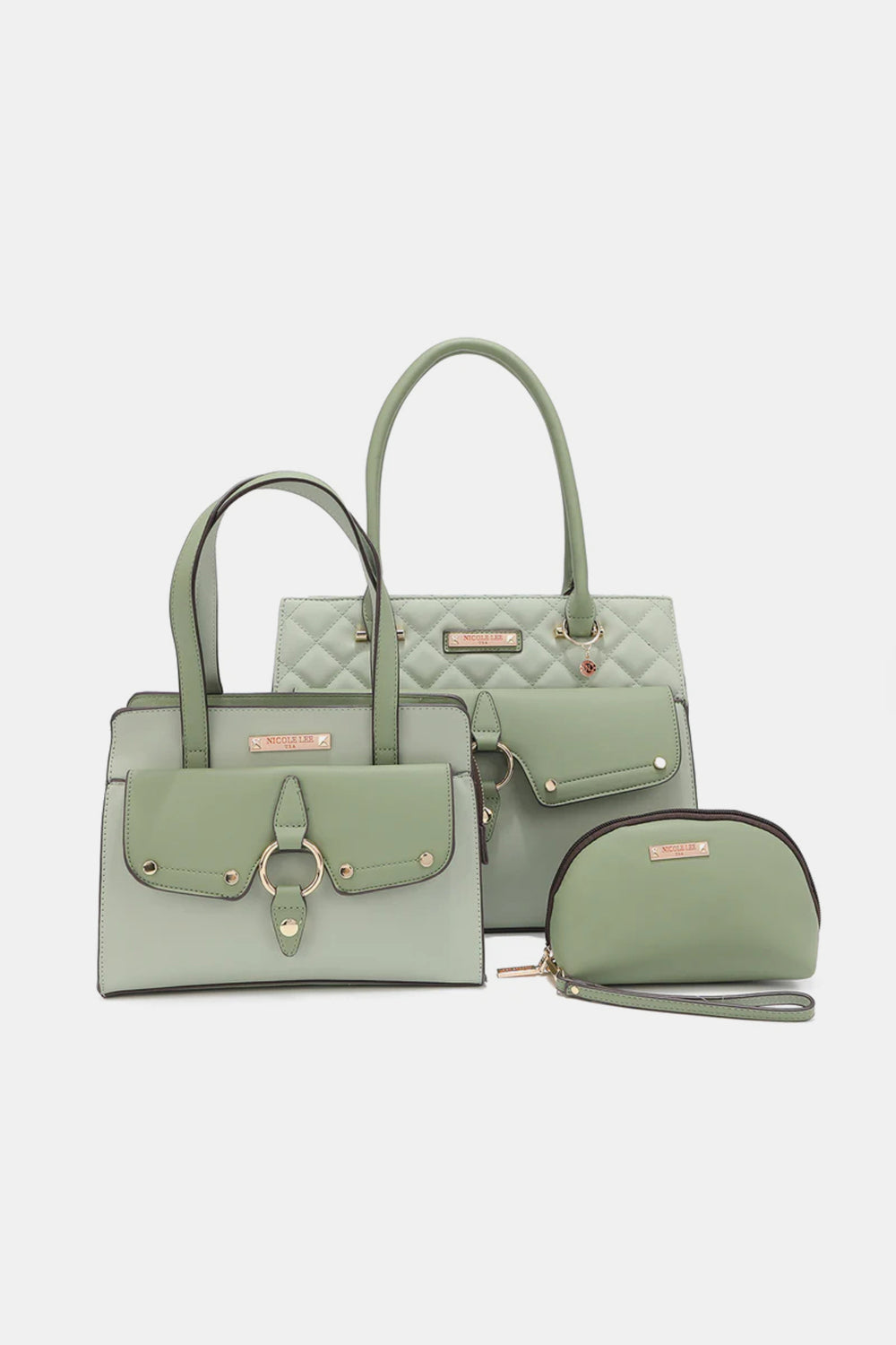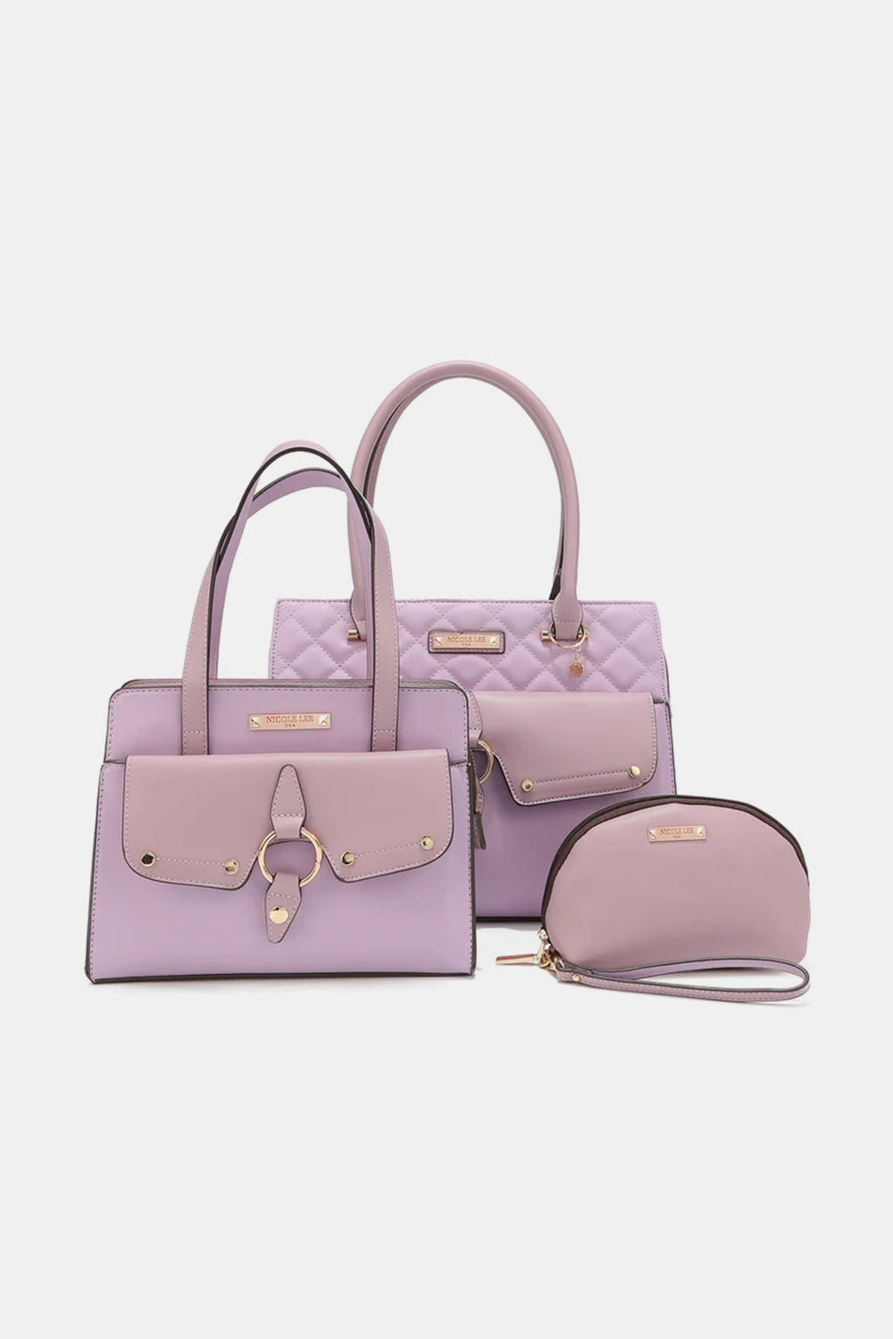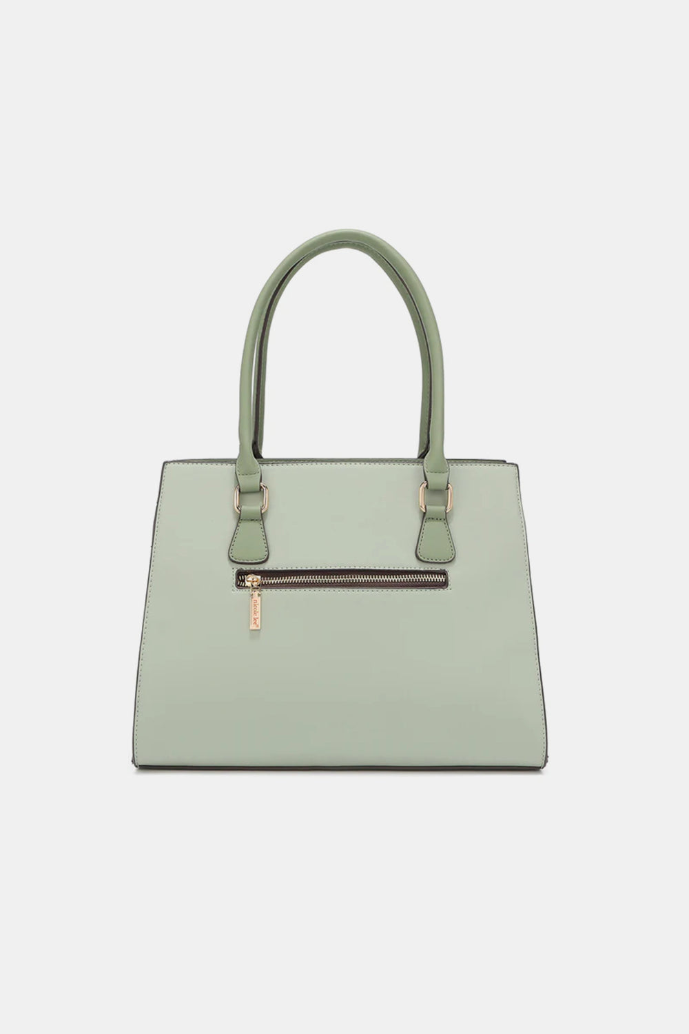 The 3 Piece Handbag Set includes a classic Satchel, a versatile Crossbody, and a stylish Pouch. The Satchel offers a timeless and elegant design, perfect for everyday use. The Crossbody provides convenience and a hands-free carrying option for busy days. The Pouch is a stylish accessory for storing small essentials or using it as a chic clutch. Mix and match these bags to complement various outfits and occasions. Stay organized and fashionable with this essential 3 Piece Handbag Set!