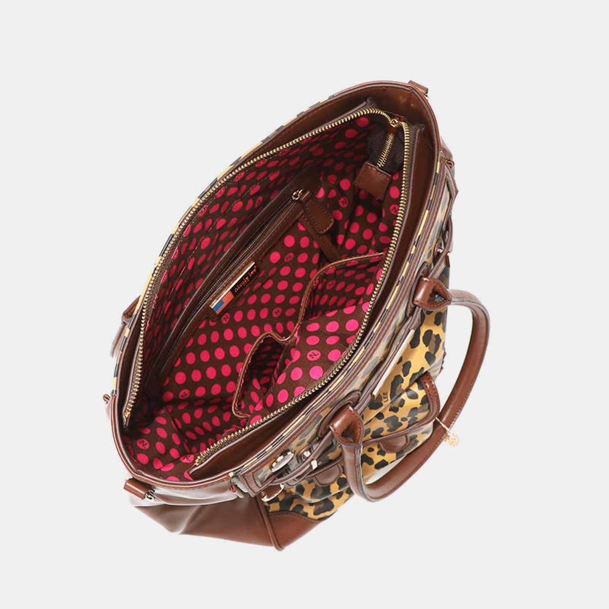 Our features a chic leopard print for a wild fashion statement that's anything but shy. Large with plenty of pockets and even a convenient cardholder in the front, our tote is a solid statement and everyday staple.