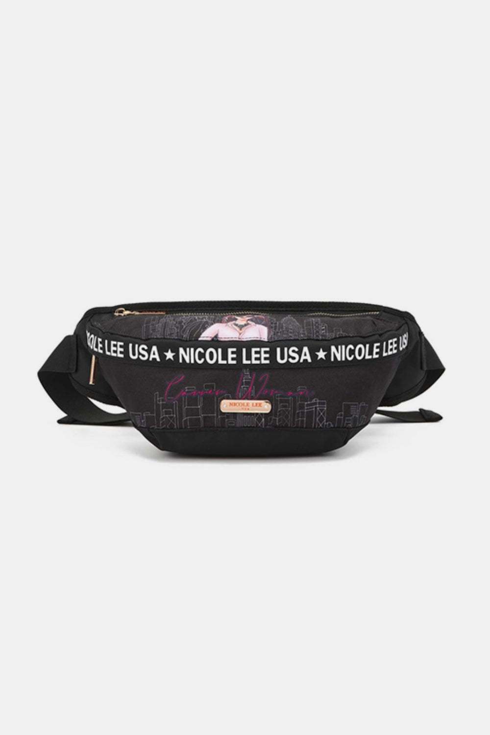 Made with smooth and textured vegan leather, the exterior exudes sophistication and sustainability. The adjustable and removable vegan leather belt strap allows you to wear it around your waist or across your body for versatile styling options. The fanny pack features a convenient front pouch and a secure back zip pouch, providing ample space to keep your essentials organized. Inside, you'll find Nicole Lee's premium print lining, adding a touch of luxury to the pack. Plus, the interior back zip pocket ensures you can keep valuables safe.