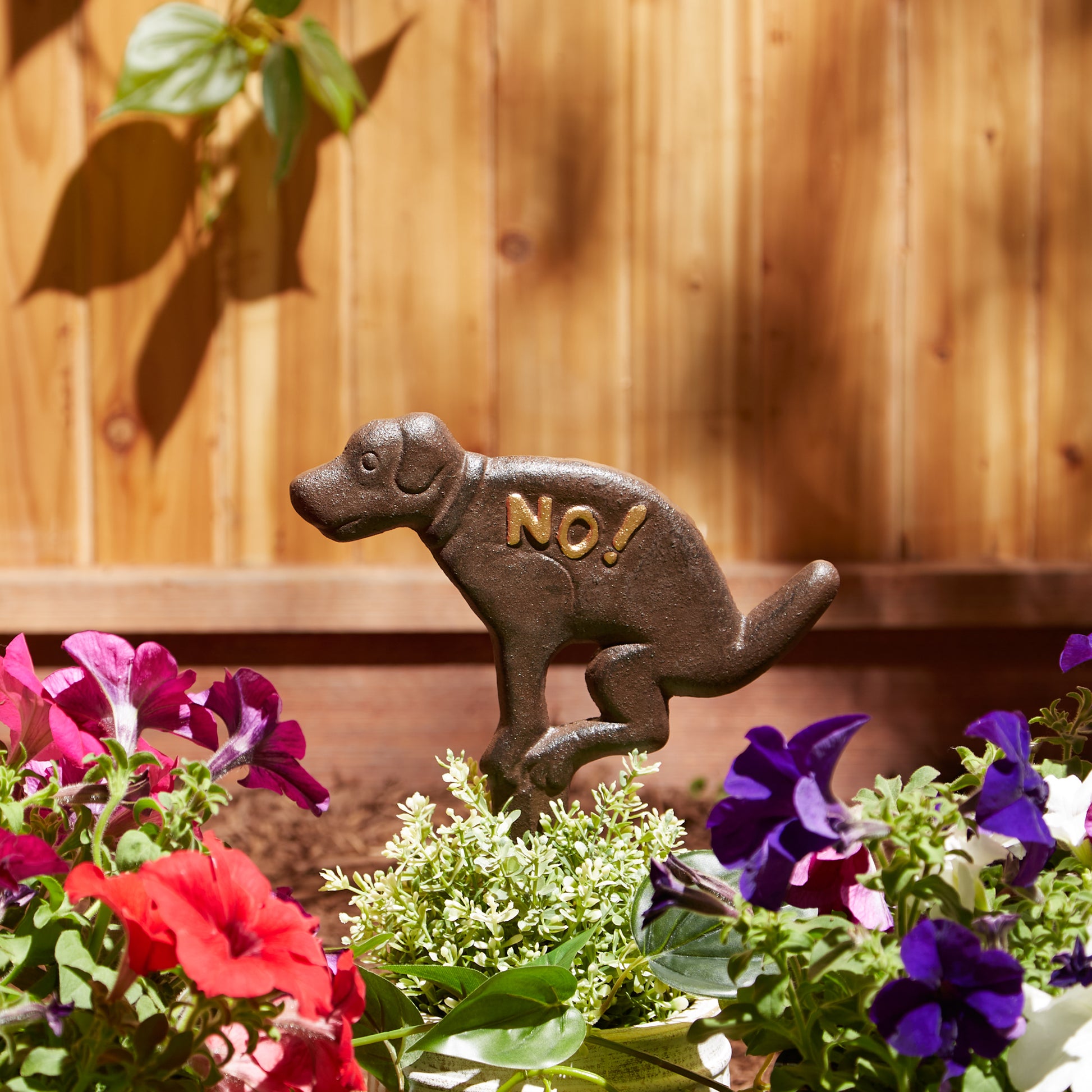Stake this decorative cast iron decor in your yard or garden, show your pup where off limits is with this fun cast iron garden stake. This piece will become a favorite piece that will last for years to come.