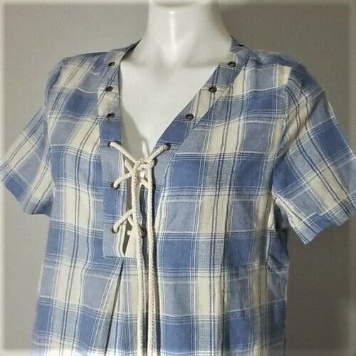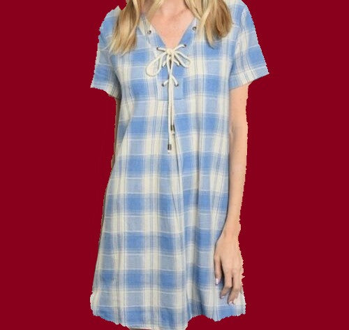 NWT Entro Blue and Ivory Plaid Short Sleeve Dress