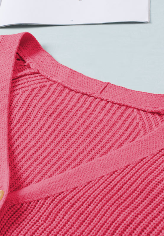 Openwork V-Neck Button Up Cardigan