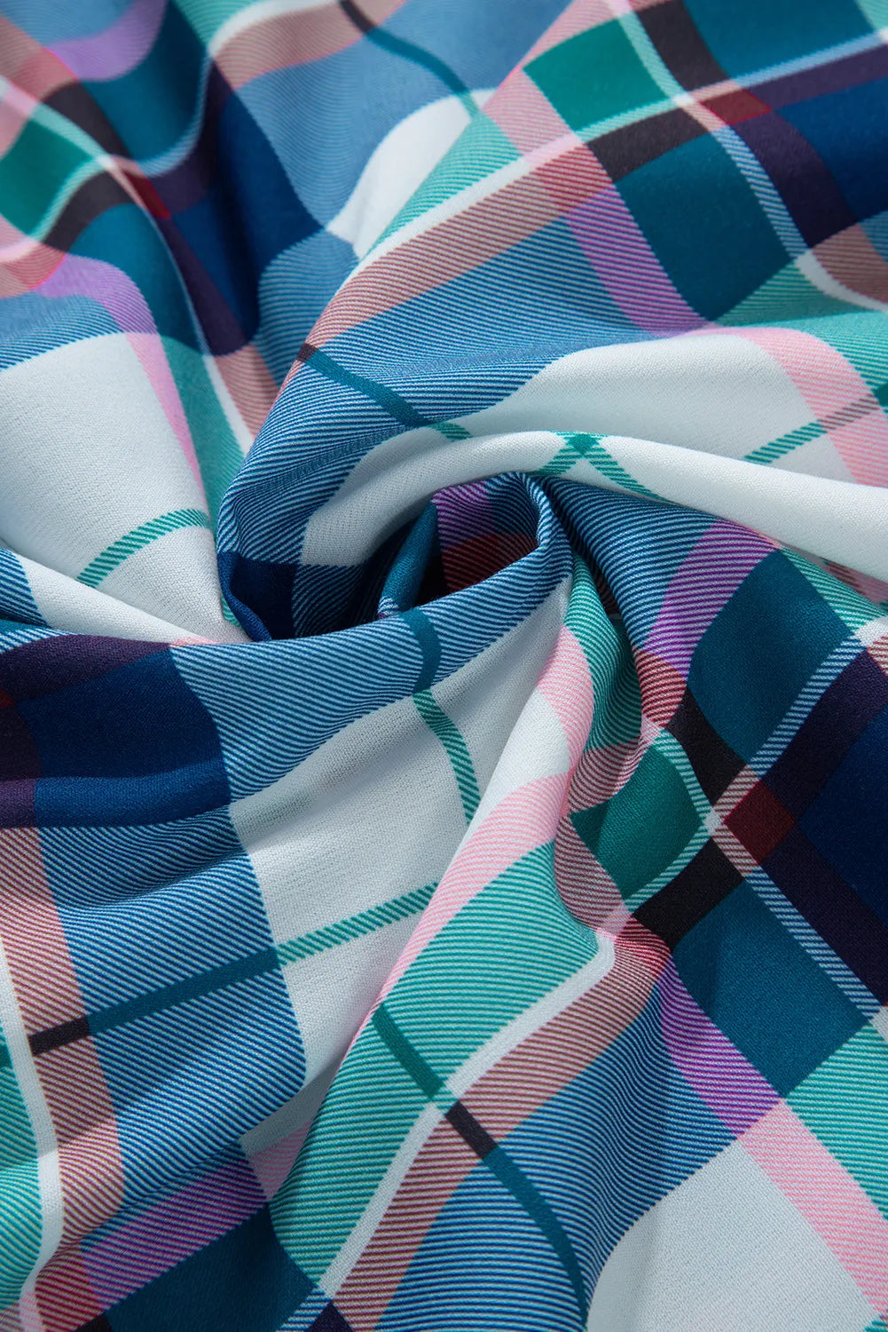 Plaid Snap Down Long Sleeve Top and Shorts Lounge Set