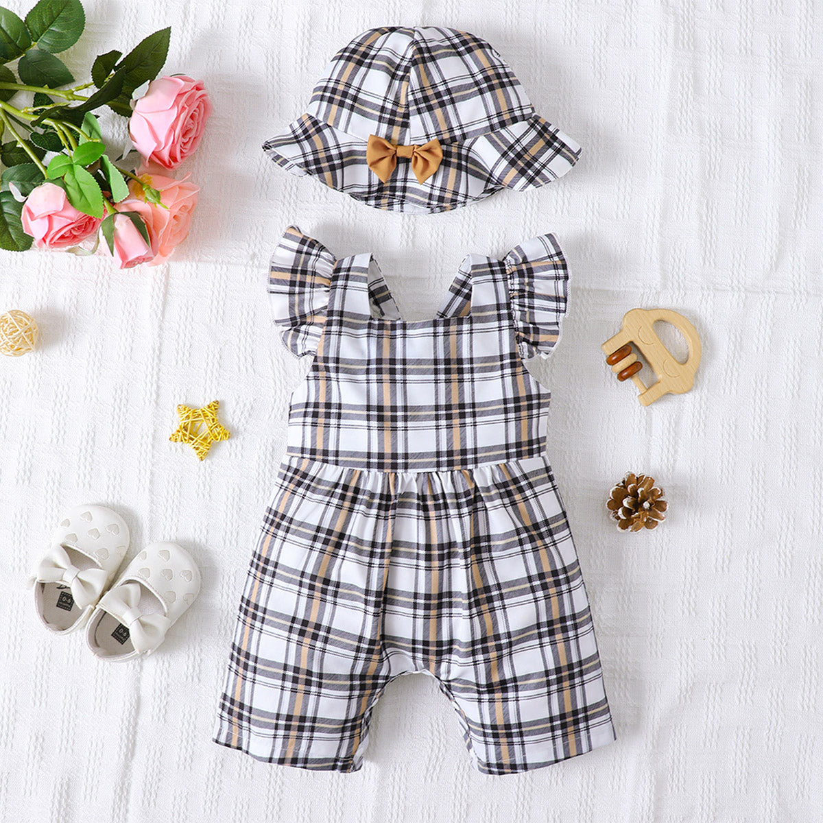 Plaid Square Neck Bow Detail Jumpsuit