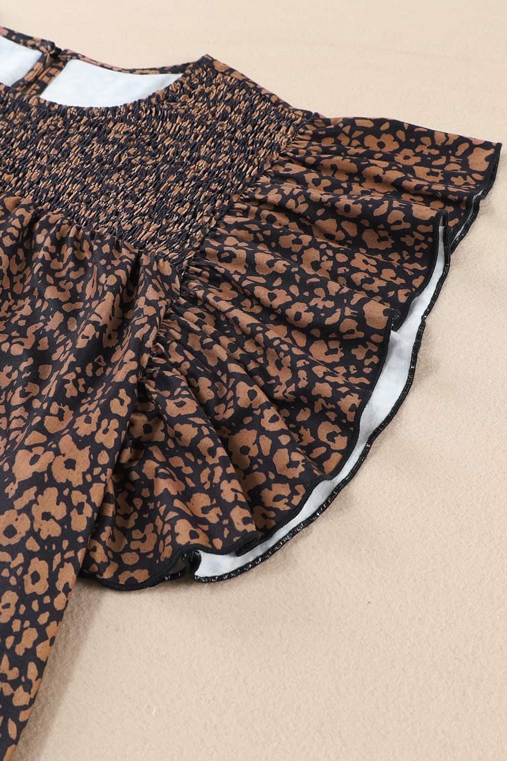 Plus Size Printed Smocked Butterfly Sleeve Blouse
