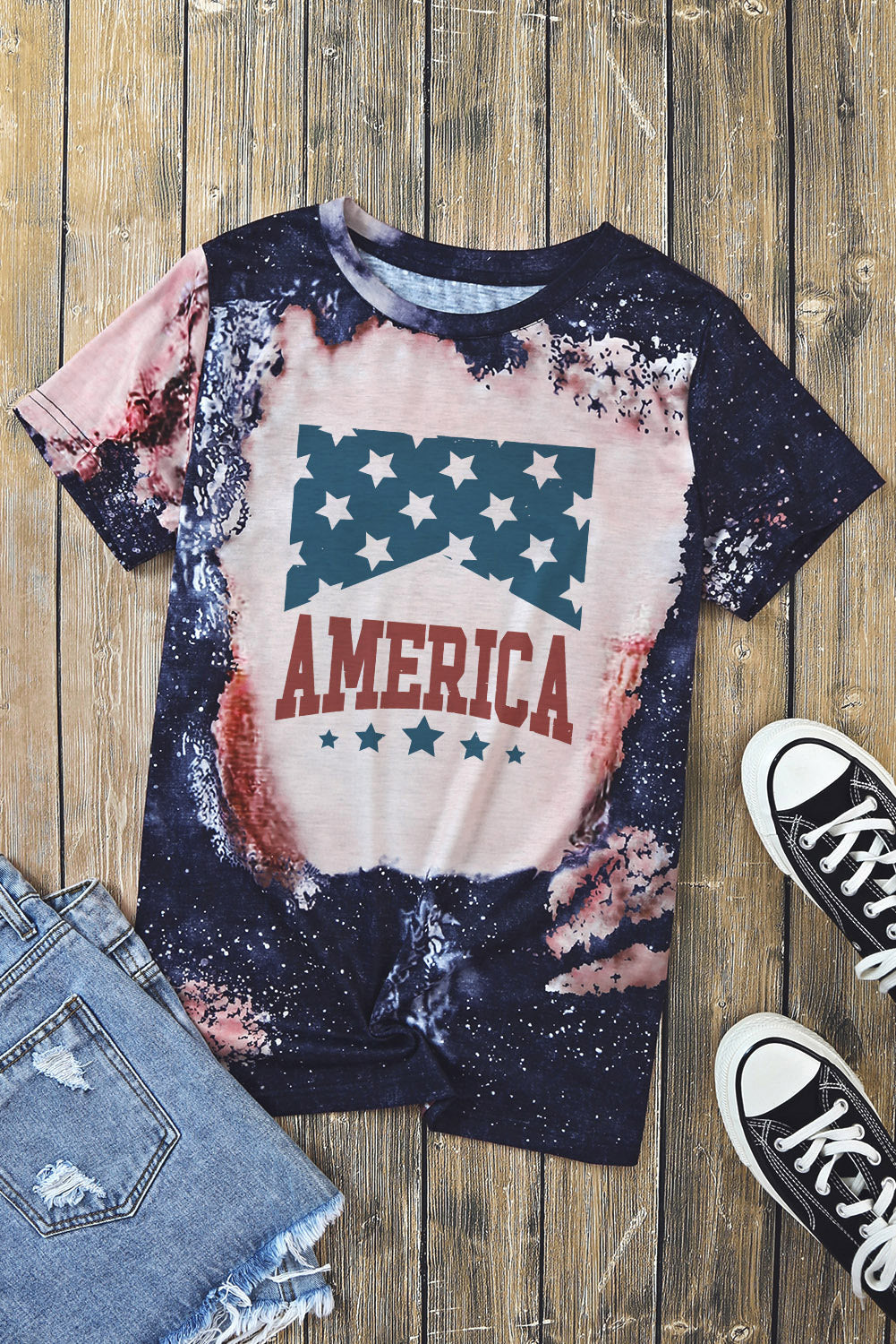 Printed AMERICA Graphic Round Neck Short Sleeve Tee