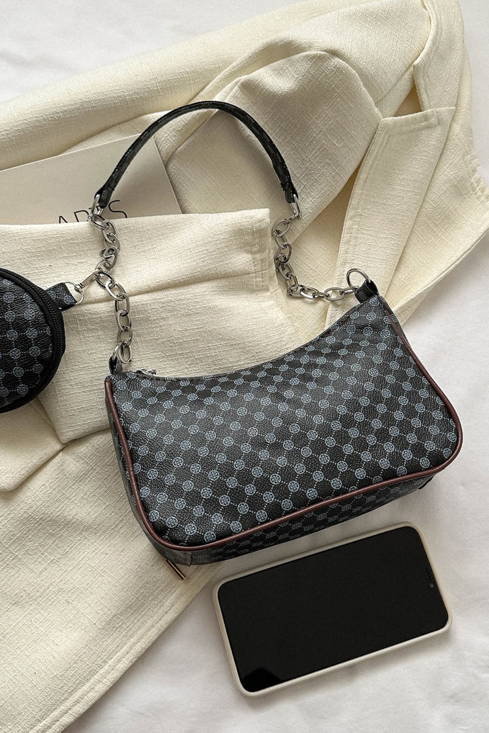 Printed Shoulder Bag and Round Wallet
