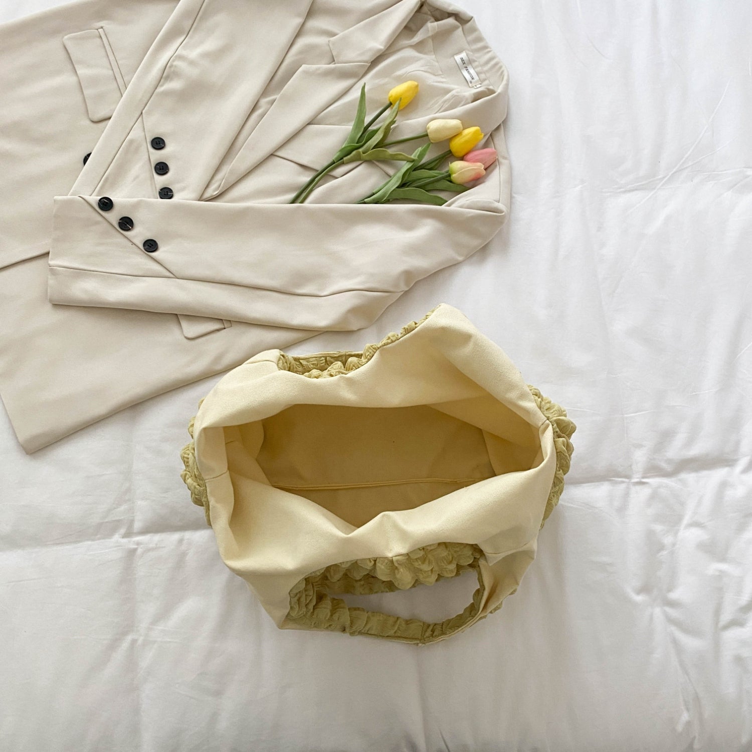 Ruched Polyester Large Handbag