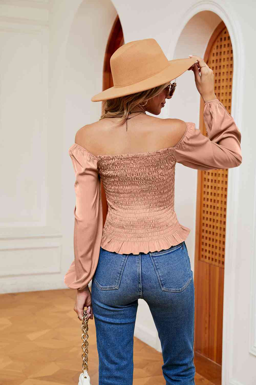 Smocked Off-Shoulder Ruffle Hem Blouse