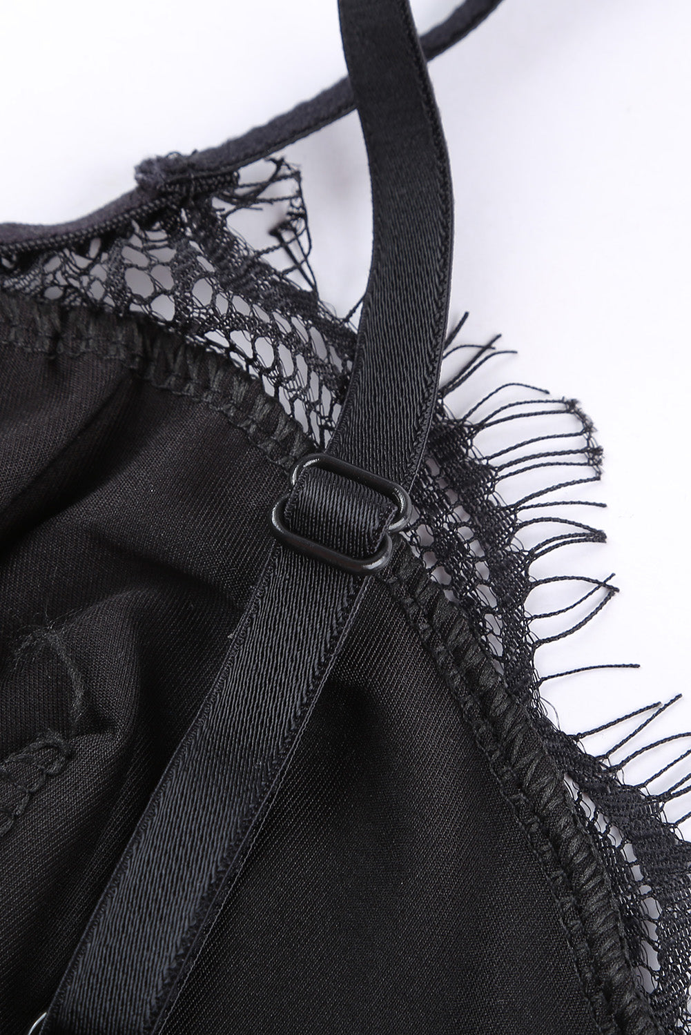 - Details: Sheer lace center, eyelash lace scalloped trim, adjustable spaghetti straps, no underwire