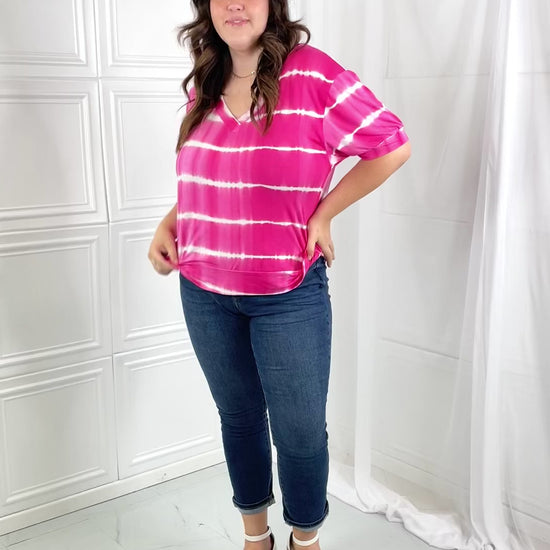 Yelete Full Size Oversized Fit V-Neck Striped Top
